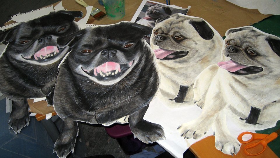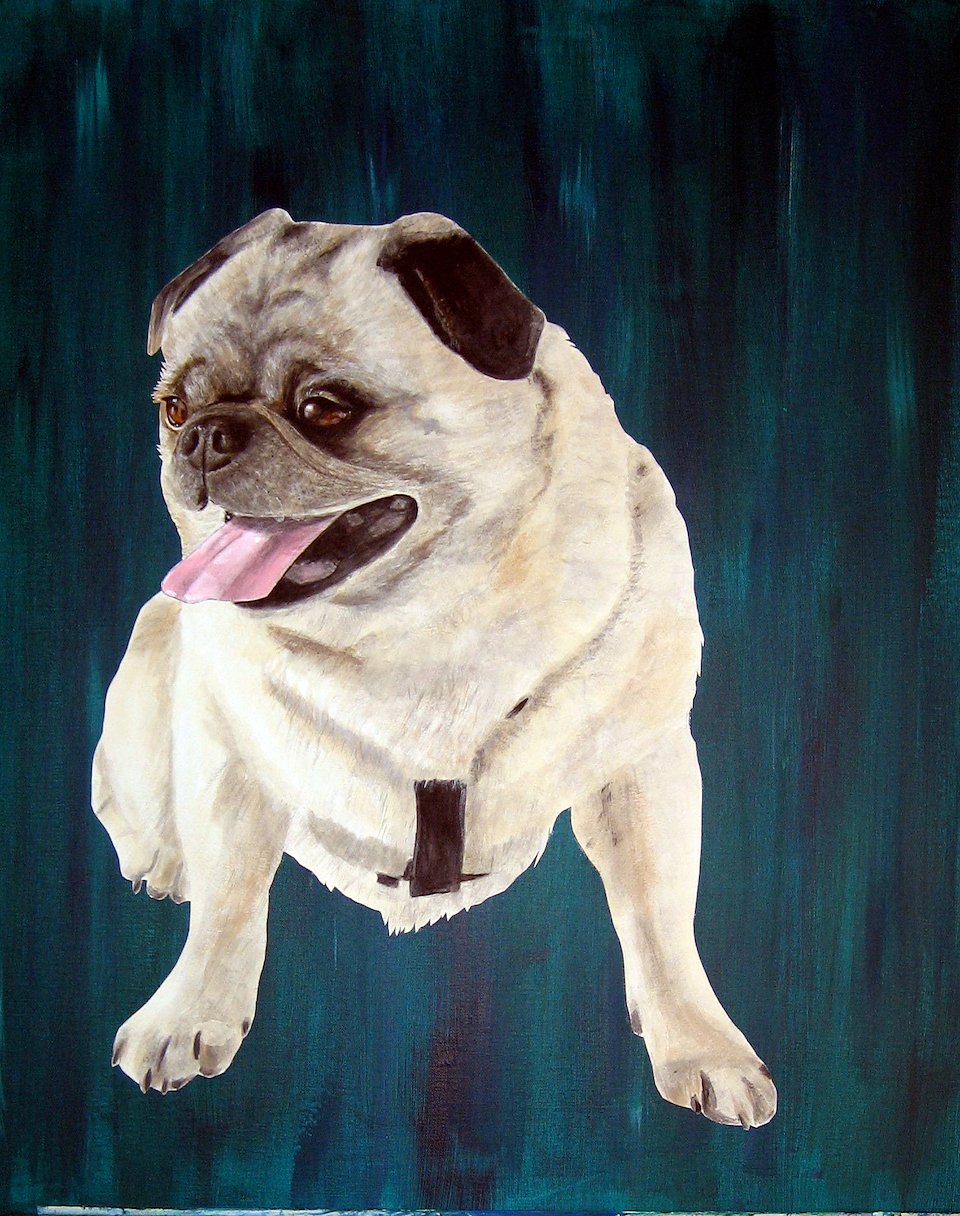 These 2 adorable elderly pugs belong to a lovely couple. The couple wanted a portrait of their 2 dogs, however they do not live together.