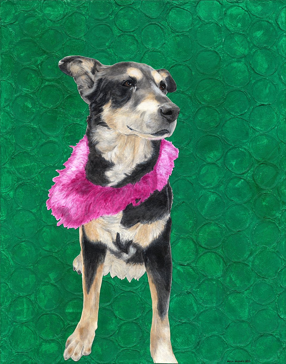 Beautiful Windy (RIP) was rescued by her owner as a senior dog. They both attended many costumed parties together and had many adventures! Windy will always be a well known and beloved dog in her community of friends. This portrait was a group gift.
