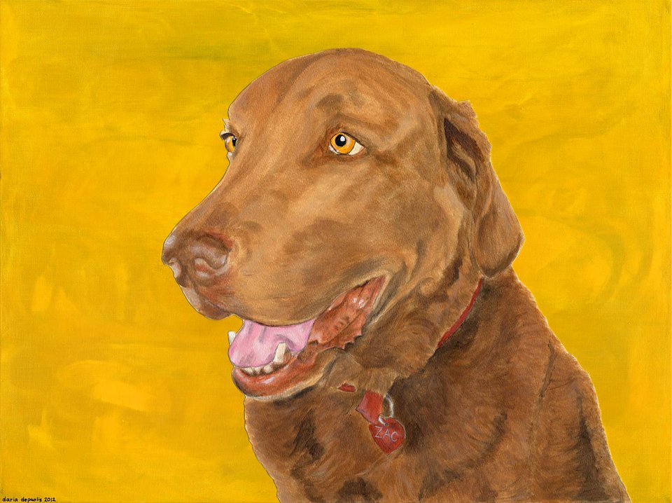 "I had you do a portrait of my parent’s dog, Zack. He was a Chesapeake Bay retriever, BIG GUY. Very sweet, totally spoiled by my step mom :)