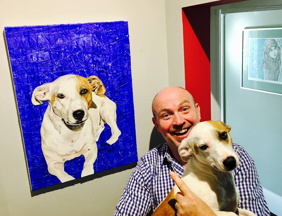 One happy husband arrives home from his business trip to find a surprise Birthday gift on the wall