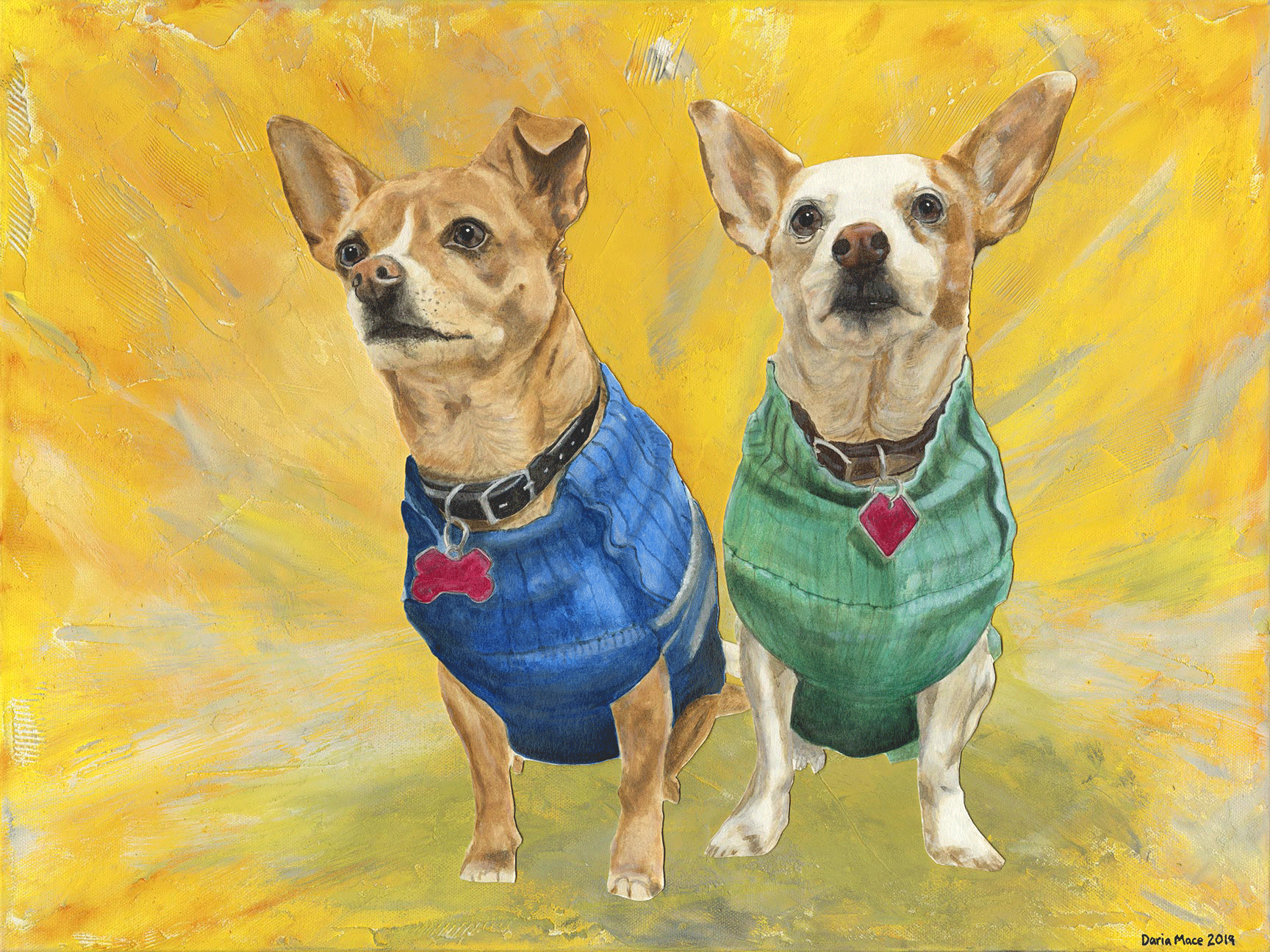 “Dang! This woman is talented. From the layering to the fine detailing in the eyes (which in my opinion makes or breaks a portrait), her work is impeccable. I Finally got my pups painted, and I LOVE IT! Thank you Daria.”
