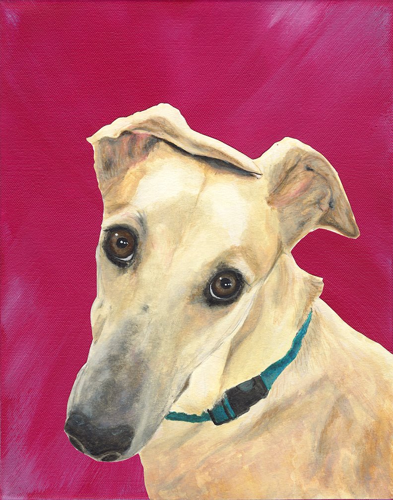 “Ibis was a rescued greyhound from a racing team in Florida where she was “kicked out” because she didn’t have the fight in her to race. She’s so gentle and sweet. She’s literally the softest dog I’ve ever touched and she’s such a love. Thank you again for the love you put into these beautiful portraits. They are so special.”